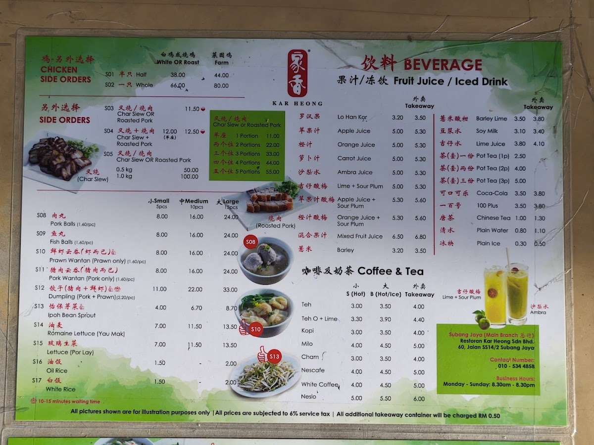 Welcome to Restoran Kar Heong SS14 Subang, a beloved Chinese eatery located at 60, Jalan SS 14/2, Subang Jaya, Selangor. This vibrant restaurant has become a go-to destination for locals craving authentic Malaysian-Chinese cuisine. The menu highlights comforting classics such as chicken rice, renowned for its fragrant rice cooked in chicken stock and tender, juicy meat. Diners rave about the delectable pork balls and the savory wantan mee topped with char siew, offering a balanced taste that isn’t overly sweet or fatty.